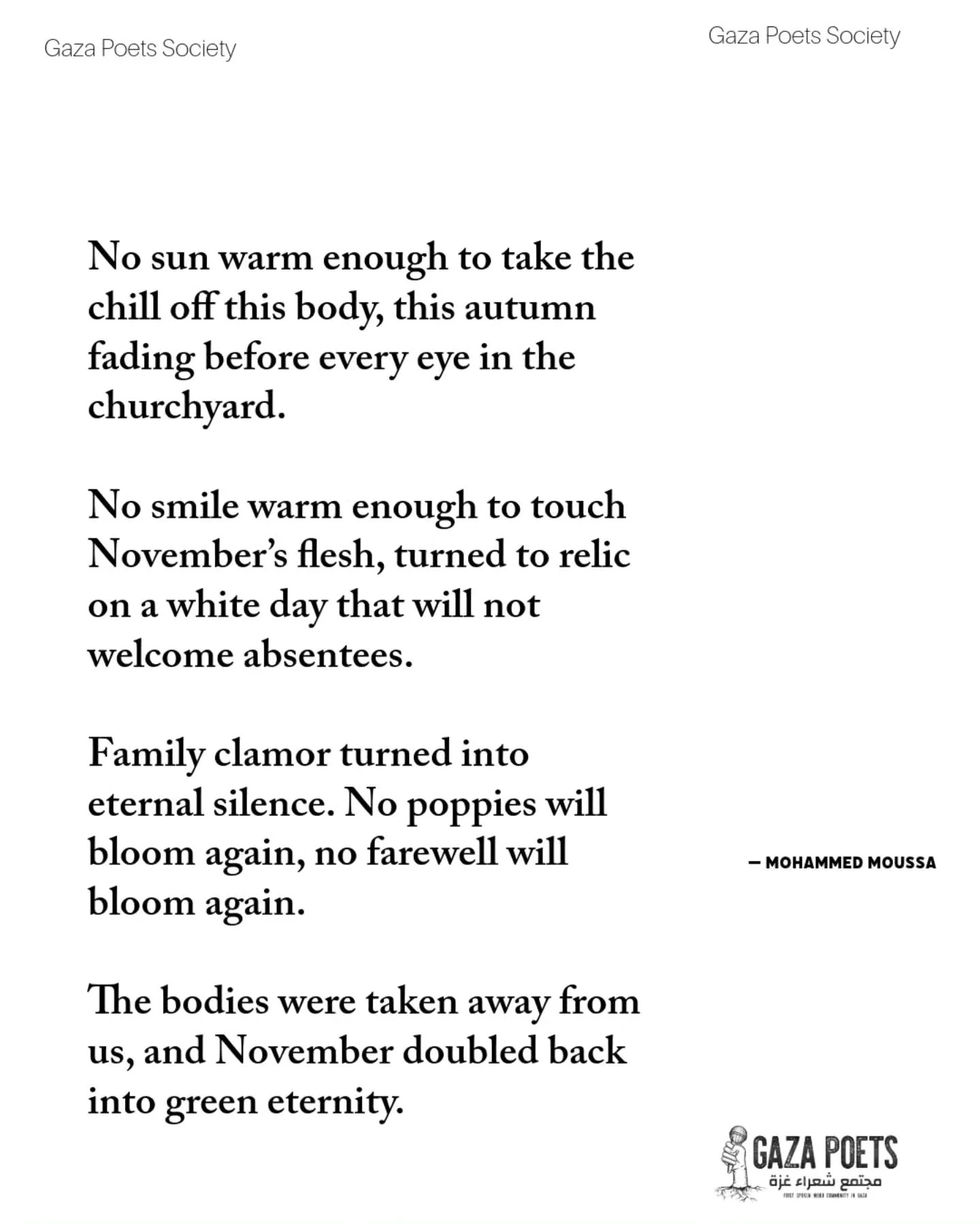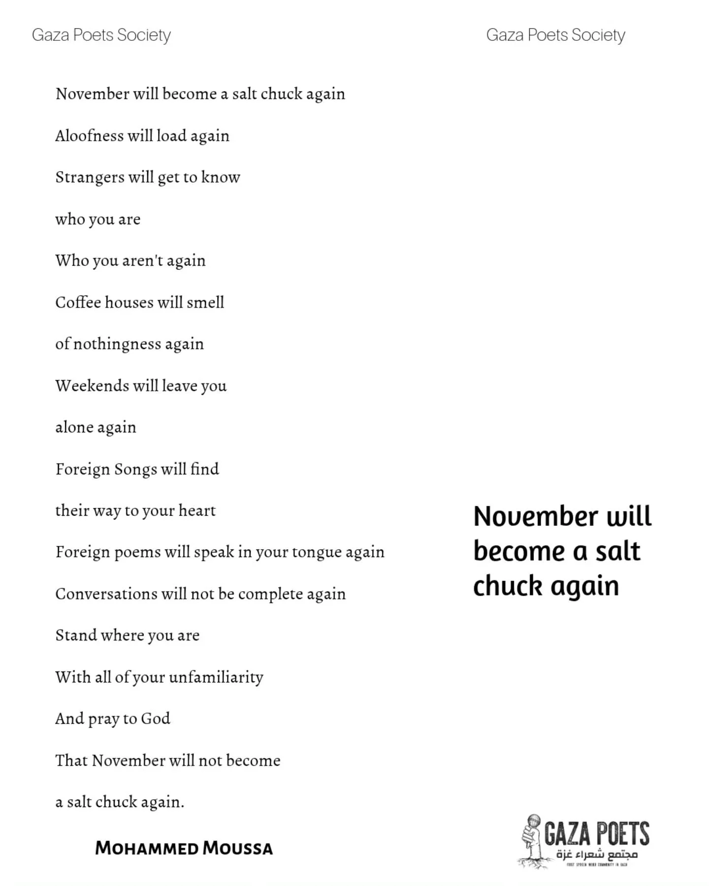 Gaza Poets Society, launched in 2018, is a community dedicated to poetry and literature in Gaza.