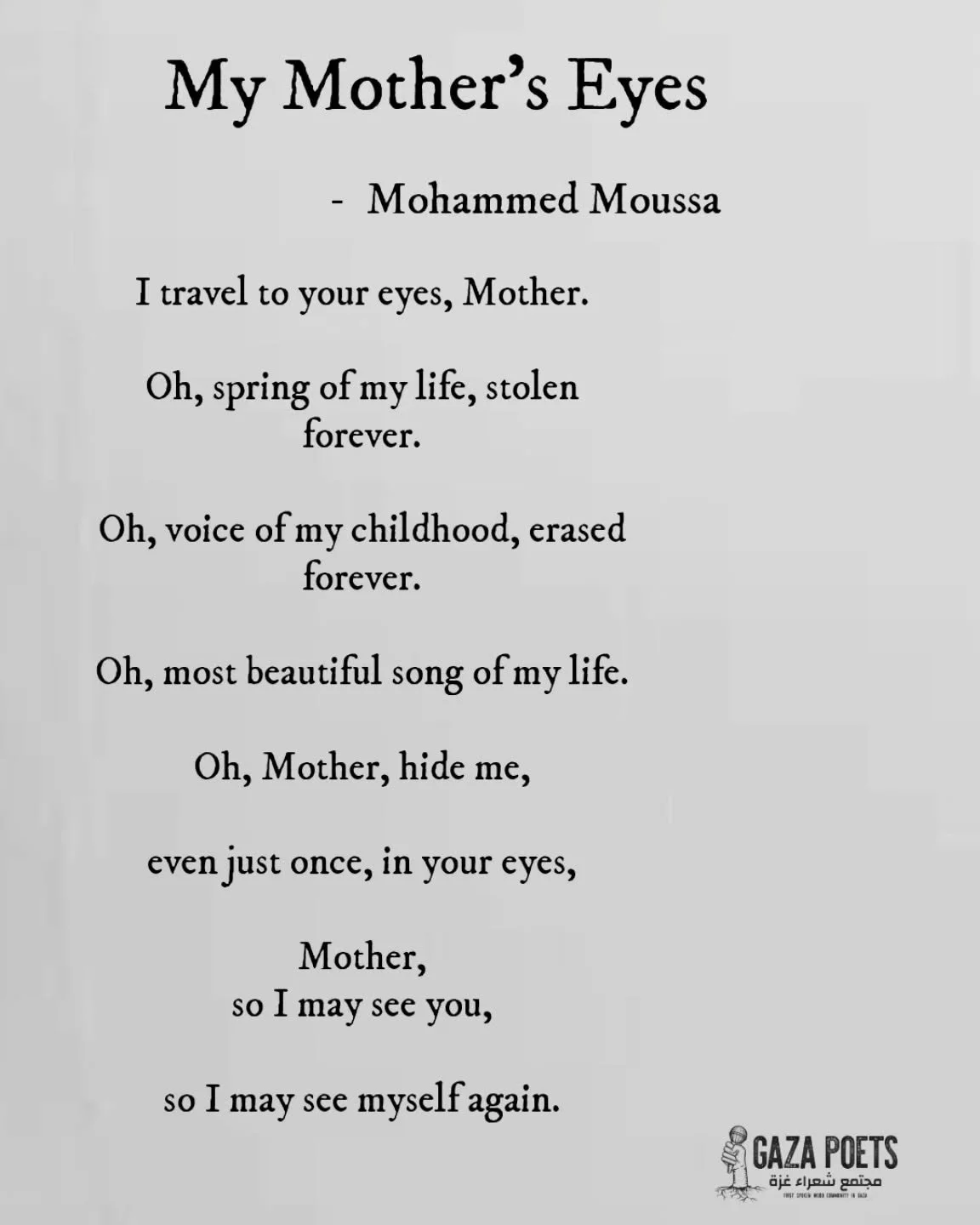 View fullsize My Mother's Eyes, Mohammed Moussa,  Gaza Poets Society
