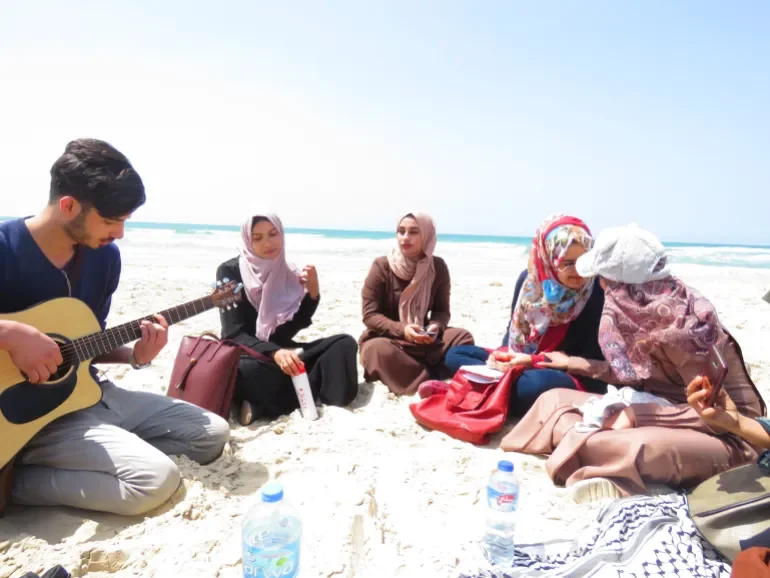 Poets gather on the beach in Gaza, sharing poems and singing songs [Photo courtesy of Mohammed Moussa]