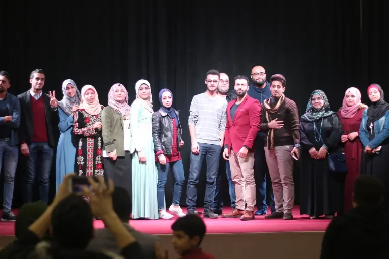 A group photo at the Hymns of Peace spoken word event in Gaza in November 2018 [Photo courtesy of Mohammed Moussa