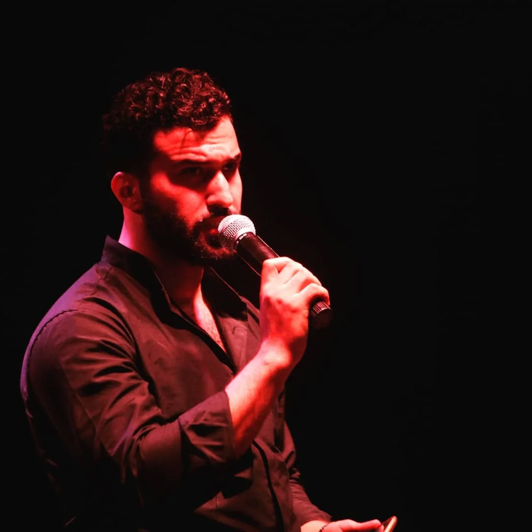 Poet and Journalist Mohammed Moussa at Gaza Youth Speaks Spoken Word Event, 2018, Gaza Poets Society